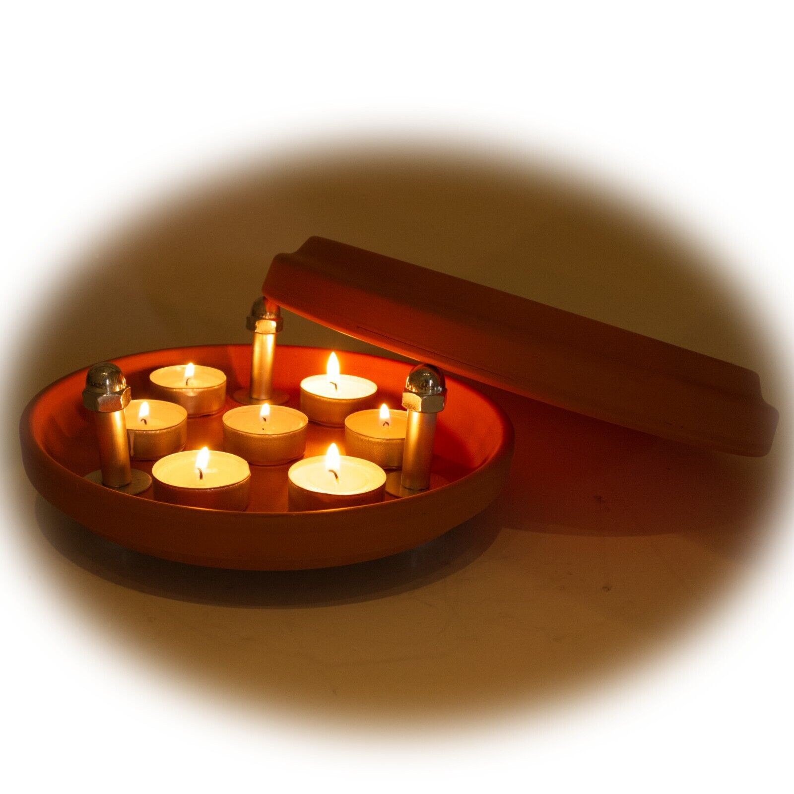 Viele kennen bereits unsere rechteckigen Wärmeplatten, in Terrakotta, oder in Basalt. Jetzt gibt es neue, runde Wärmeplatten für jeden Bedarf, in verschiedenen Größen.